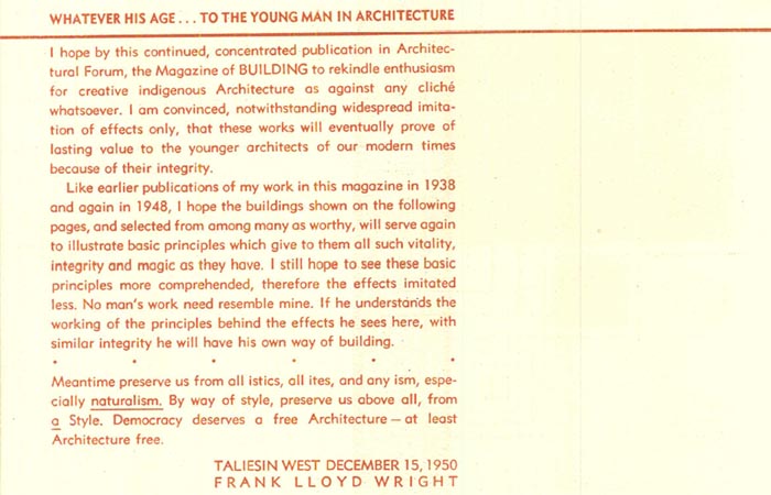 本次旧书分享1951年1月刊,本期主要讲述七个赖特的建筑: