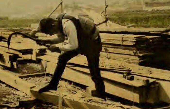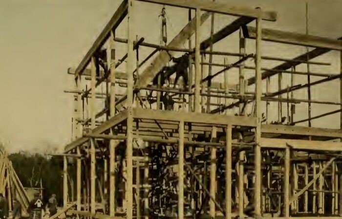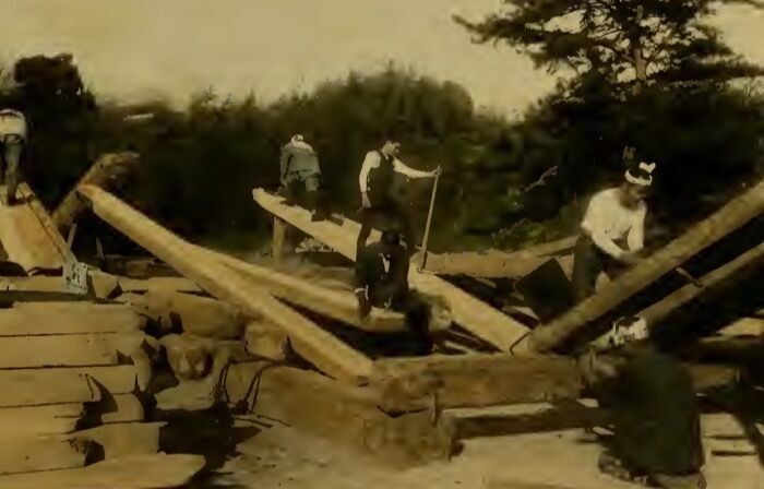 The pictures here depicted,show the whole process of building a middle class houses,from the selection and sawing of timbers until they are formed into a complete house.The head carpenter confering with the owner,plans the form and design of the house.