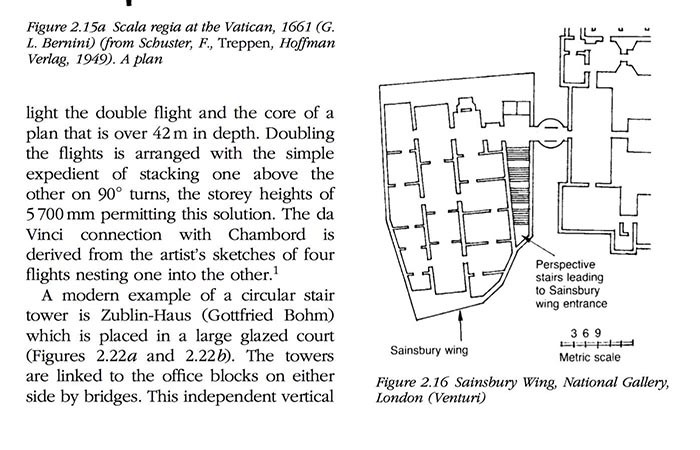 Today, lifts and stairs as well as esca-lators form the core of a11 multi storey plans, sadly often hidden behind solid enclosures to form uninterestlng fire compartment zones. Modern technology using heat resistant glazmg releases the architect from boxed-in solutions. Visual connectlon IS once more feasible between vertical circulation and the spaces served. Pressure controlled envlr onments can exclude smoke without recourse to the complicatlon Of double lobbies. Research for this book amongst Older masterpieces in London Often revealed that double lobbies are thwarted by havmg one set of doors per manently wedged open or simply propped alar with a fire extinguisher Today It IS obligatory to provide access for the disabled , either by ramp or by stalrlifts or hoists. Outstanding developments such as the Lloyd’s Building, London , or the Hong Kong and Shanghai Bank explore the new technologies and reveal that stair cases and their modern eqtllvalents can recapture the visual excitement that Piranesi (Figure 1 , 2 ) or Leonardo da Vinci awarded to stalrs within the Interlor volume of their designs. I hope that this new textbook will allow the reader to galn Alan , s Information in a condensed form but at the same time to be enthused by our pictures and sketches. I hope Alan approves Of my new version of his book.